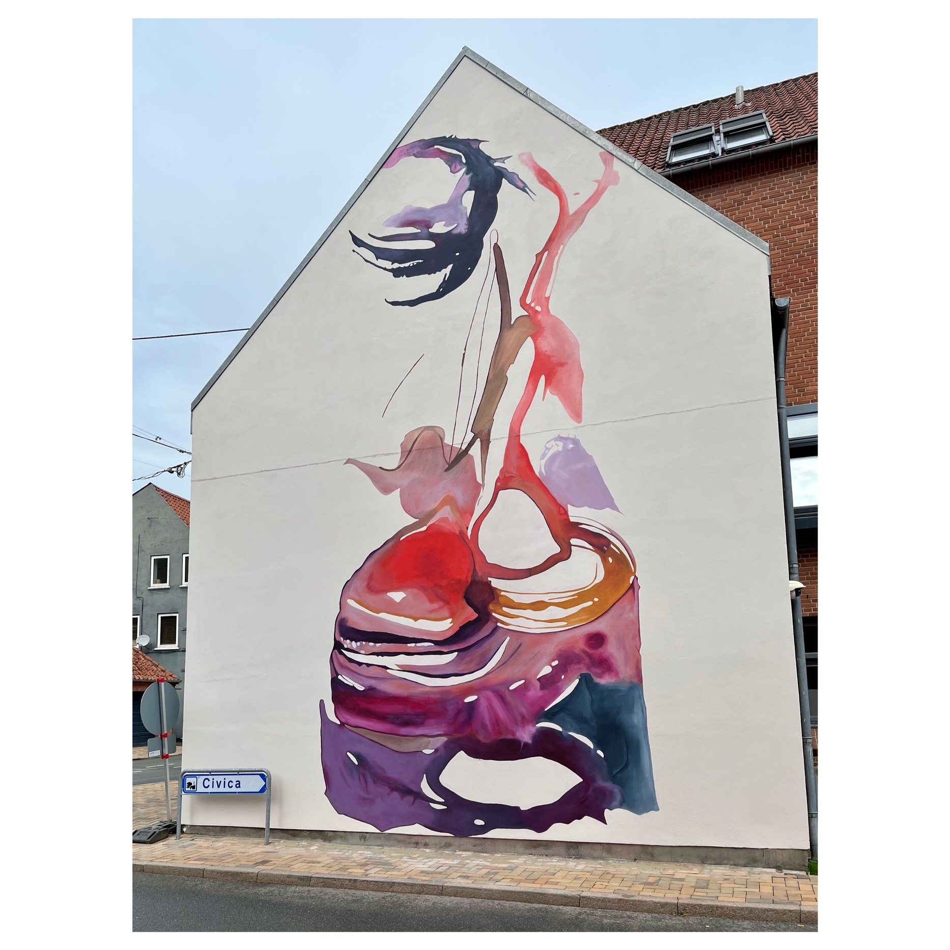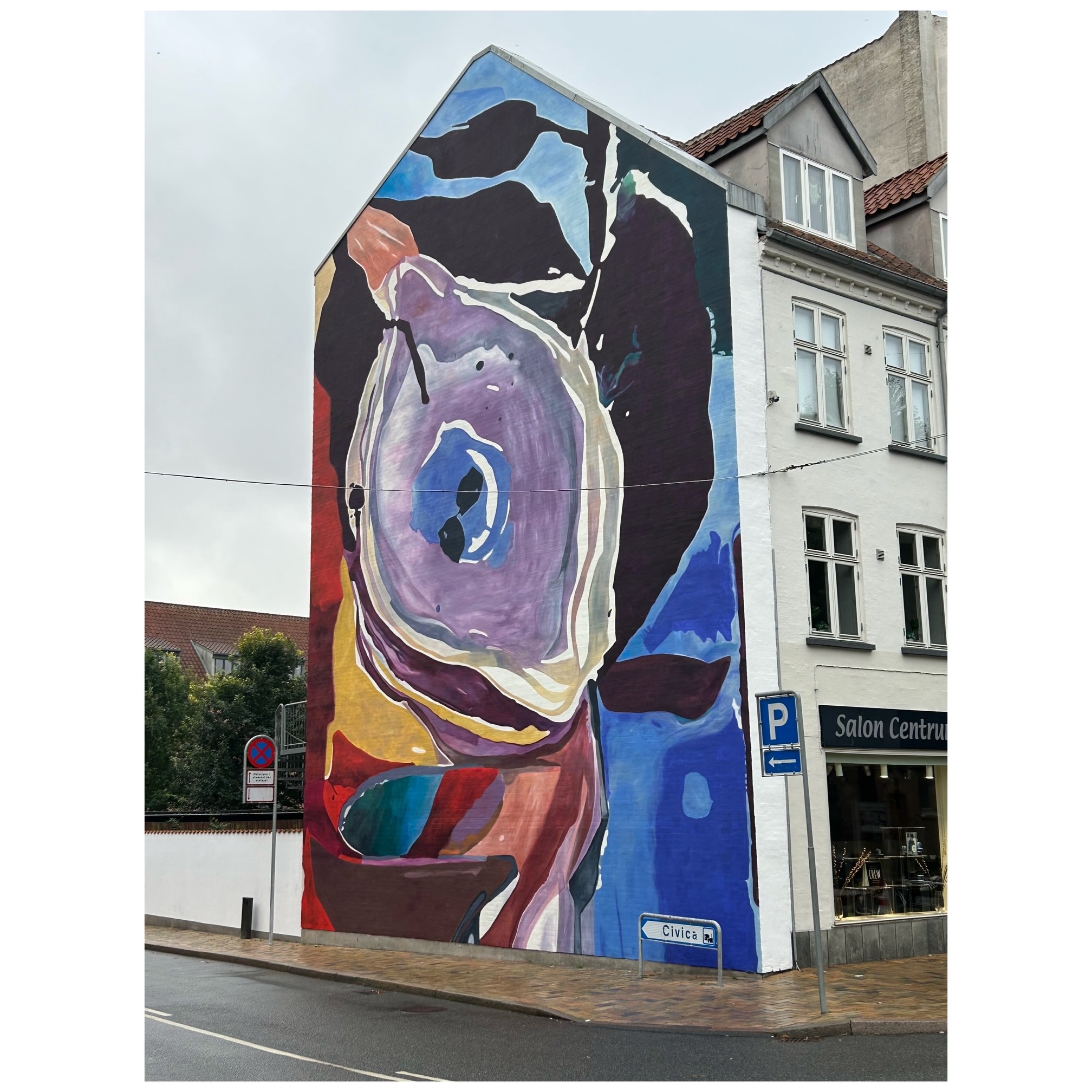 Emily Gernild has created two large-scale murals, Limon Pane, now decorating the gables on Nørregade in Odense.